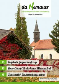 Aus dem Stadtrat 5 schen Landtag und Agrarpo- litische Sprecherin der CSU Landtagsfraktion. Der Bau- erntag war dieses Jahr mäßig besucht. Am Nachmittag fand wie alle zwei Jahre die Tangrintler Mo- denschau statt. Choreogra- fi ert wurde die Modenschau wieder von Claudia Lindner von Pia´s Frauen-Fitness. An dieser Stelle ein herzliches Dankeschön für die Organi- sation. Die Modenschau wur- de wieder sehr gut von den Gästen angenommen. Zum Festausklang sorg- ten „Klostergold“ in einem gut gefüllten Bierzelt noch- mals für Stimmung. Das Feu- erwerk der Firma Koller aus Neumarkt war sehr anspre- chend und es wurden wieder viele positive Rückmeldun- gen geäußert. Die Verlegung auf 21.30 Uhr kann beibehal- ten werden. Nachlese und Anregungen für das Volksfest 2026 Volksfestbus: Für die Rückfahrt vom Volks- fest wurden folgende Busse eingesetzt: � Freitag: 2x Großbusse, 1x 21-Sitzer, 1x 8-Sitzer � Samstag: 2x Großbusse, 1x 21-Sitzer, 1x 8-Sitzer � Sonntag: 2x 21-Sitzer � Montag: 2x 21-Sitzer � Dienstag: 2x 21-Sitzer Den Shuttlebus haben die- ses Jahr 624 Fahrgäste be- nutzt. Das sind 40 weniger als im Vorjahr. Die Stadt He- mau musste einen Zuschuss in Höhe von 3.704,20 € net- to (4.408,00 € brutto) leisten. Im Vergleich zu 2025 sind die Zuschusskosten um netto 112,60 € gestiegen. Die bei- den Großbusse am Freitag und Samstag sollen vorerst für die Rückfahrt beibehalten werden, da diese an beiden Tagen einigermaßen ausge- lastet waren. Festzelt: Das Festzelt war wieder schön dekoriert. Die Musik- anlage der Firma PATO war ebenfalls ausreichend. Alles in allem kann man mit die- sem Zelt sehr zufrieden sein. Die Zusammenarbeit mit den TAGE DER OFFENEN TÜR BRK Integrativkindergarten St. Barbara | Freitag, 14. November 2025, 15–17 Uhr Beratzhausener Straße 52, 93155 Hemau, Tel. 09491/9549113, E-Mail: kiga-st.barbara.210@brk.de Leitung: Teresa Schmalzbauer BRK Kinderkrippe Krabbelkiste | Freitag, 14. November 2025, 15–17 Uhr Haager Str. 14a, 93155 Hemau, Tel. 09491/9558908, E-Mail: krippe-krabbelkiste.210@brk.de Leitung: Stefanie Fromm Kath. Kindergarten St. Raphael | Freitag, 21. November 2025, 15:30-17:30 Uhr Sr.-Dina-Weg 1, 93155 Hemau, Tel. 09491/546, E-Mail: kita.hemau@bistum-regensburg.de Leitung: Isabella Schitko – Stellvertretende Leitung: Anna Kornprobst Kath. Kindergarten Dr. Paul Josef Nardini | Freitag, 21. November 2025, 16-18 Uhr Regensburger Str. 21b, 93155 Hemau, Tel. 09491/95376-00, E-Mail: kindergarten@nardini-hemau.de Leitung: Andrea Schmid Johanniter Kinderhaus Hohenschambach | Freitag, 28. November 2025, 15-17 Uhr Hochstraße 24, 93155 Hemau/Hohenschambach, Tel. 09491/9536599, E-Mail: kinderhaus.hohenschambach@johanniter.de Leitung: Alexandra Heß BRK Kinderhaus Wiesenwind | Freitag, 28. November 2025, 15-17 Uhr Wittelsbacherstr. 22, 93155 Hemau, Tel. 01517/0417042, E-Mail: kinderhaus-wiesenwind.210@brk.de Leitung: Linda Yeboah BRK Waldkindergarten Wurzelzwerge | nach Vereinbarung Ehemaliger Standortübungsplatz Nähe Kasernenstraße, 93155 Hemau, Tel. 0151/46797323, E-Mail: waki-wurzelzwerge.210@brk.de Leitung: Anja Ibler tyband „Donnaweda“ für aus- gelassene Stimmung. 07. Sonntag, Septem- ber 2025: Der ökumenische Gottesdienst mit Pfarrer Lä- ßer war gut besucht. Danach blieben auch wieder viele Be- sucher zum Mittagessen sit- zen. Am Nachmittag fand zum ersten Mal eine Regist- rierungsaktion in Zusammen- arbeit mit der DKMS auf dem Tangrintel-Volksfest statt. Da- bei ließen sich 58 Personen registrieren. Die Unterhal- tungsmusik durch die Stadt- kapelle Hemau kam gut bei den Gästen an. Bei der diesjährigen Verlo- sung am Sonntagabend wur- den wieder drei Preise ver- lost. Zusätzlich gewann jedes Los mit der richtigen Endziffer eine Maß Festbier. Die Verlo- sung wurde wieder um ca. 21.30 Uhr durchgeführt. Am Abend spielte „Dezent Böh- misch“, die von den verblei- benden Zeltbesuchern sehr gut angenommen wurden. 08. Montag, Septem- ber 2025: Das Oberbayeri- sche Marionettentheater mit dem Stück „Rumpelstilz- chen“ kam bei den Kindern wieder sehr gut an. Das Fest- zelt war fast bis zum Mittel- gang gefüllt. Auch auf dem Festplatz herrschte reges Treiben und alle Fahrgeschäf- te und Schausteller waren stark ausgelastet. Der Ein- ladung zum Tag der Betrie- be und Behörden folgten ca. 140 Gäste. Die rechts und links am Mittelgang reser- vierten 32 Tische reichten für die Ehrengäste und Mitarbei- ter der Stadt Hemau aus. Die musikalische Darbietung der Kapelle „Breznsalzer“ kam gut beim Publikum an. Dienstag, 09. Septem- ber 2025: Zur großen Bau- ernkundgebung sprach MdL Petra Högl, Vorsitzende des Agrarausschusses im Bayeri-